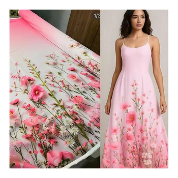 Lightweight High Elastic 100% Super Soft Printed Polyester 4 Way Stretch Spandex Fabric for Dresses and Skirts