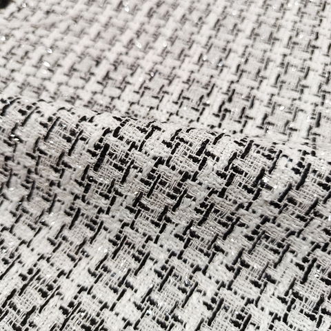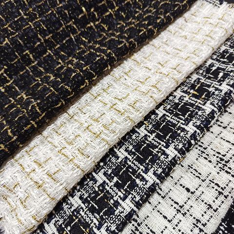 Wholesale Cheap Stocklot Jacquard Woven Tweed Fabric Heavyweight Polyester Cotton Yarn Dyed Fabric for Winter Coats Dresses